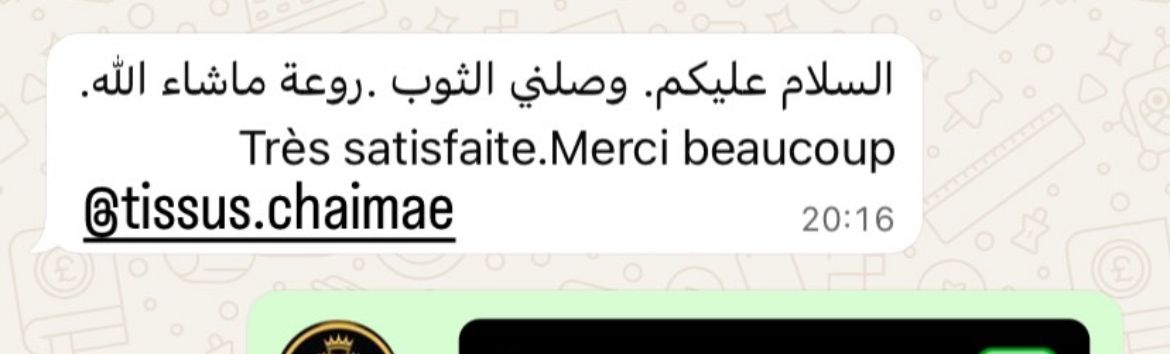 Nous sommes une boutique marocaine spécialisée dans la vente de tissus de qualité. Notre objectif est de vous offrir des produits élégants, un service fiable et une expérience d’achat en toute confiance.
