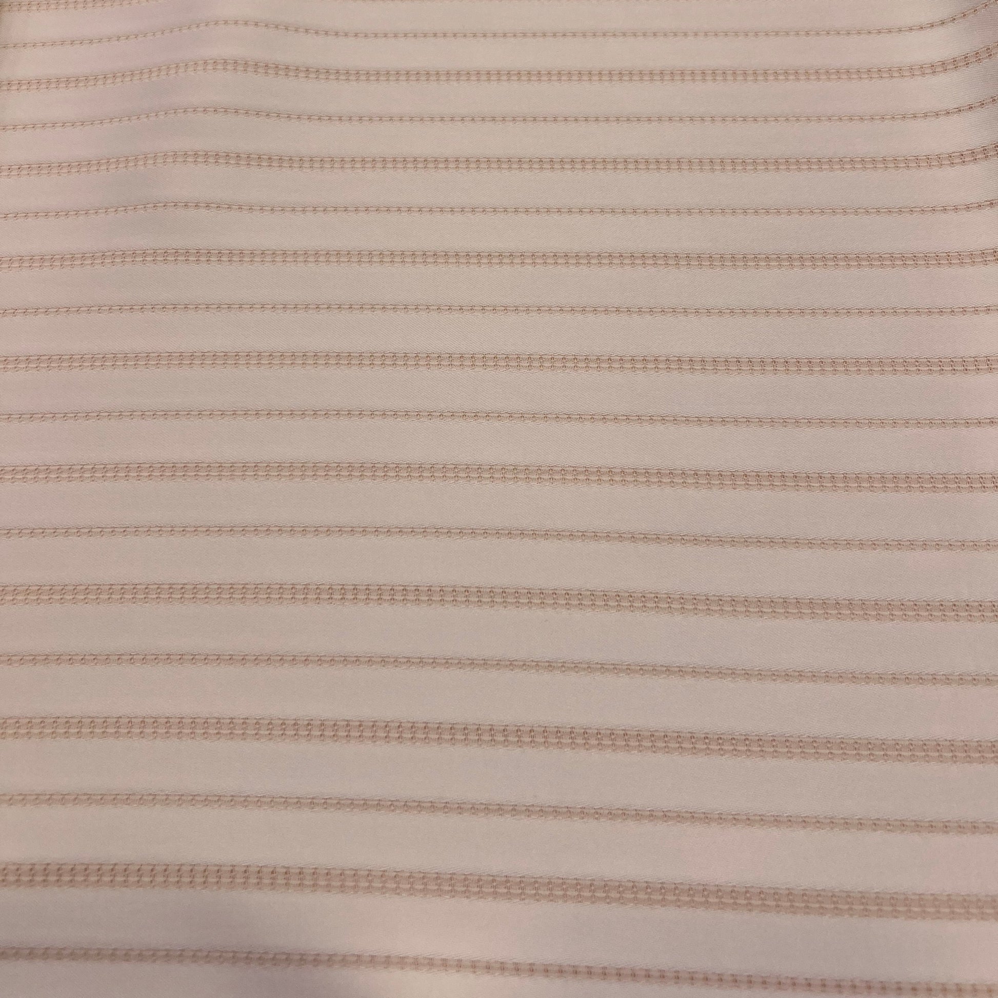 Le tissu offre une texture douce, fluide et légèrement satinée, avec des rayures verticales qui allongent la silhouette et ajoutent une note de sophistication.